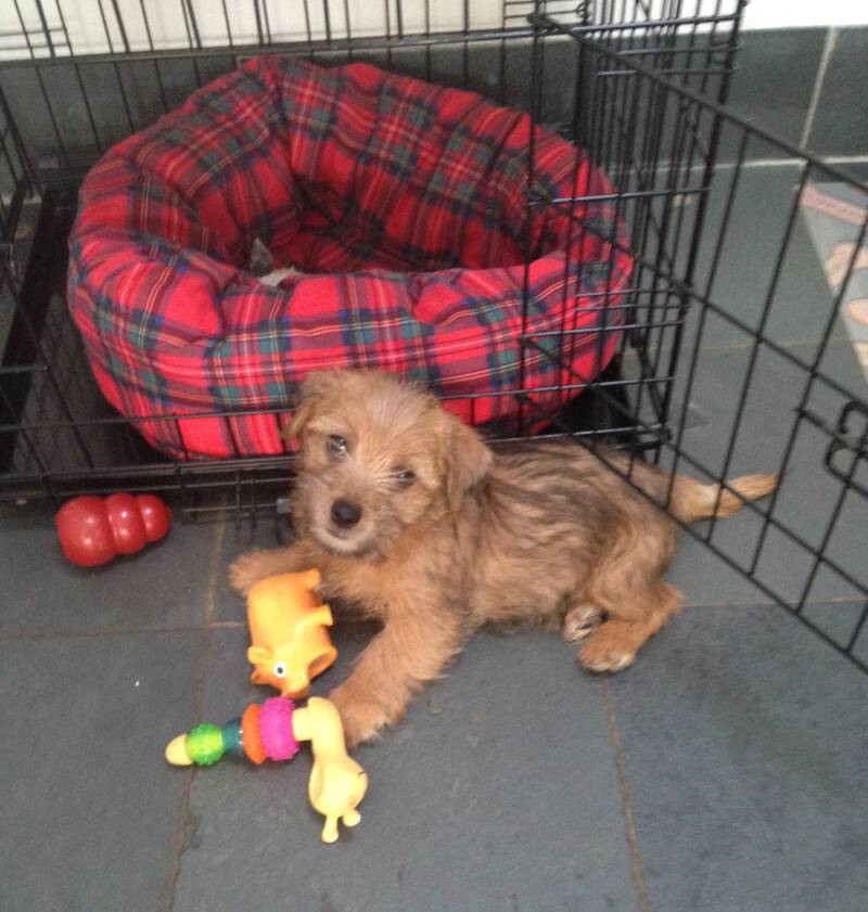 'Toffee' is settling in well. First night wasn't too bad, only up twice, and did her business outside. Last night, she went through the night with no crying. She is so affectionate and attentive. You should be very proud - she is such a lovely pup. She 'comes' and "sits' on command already!